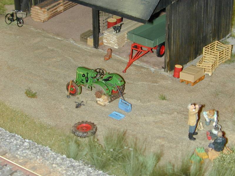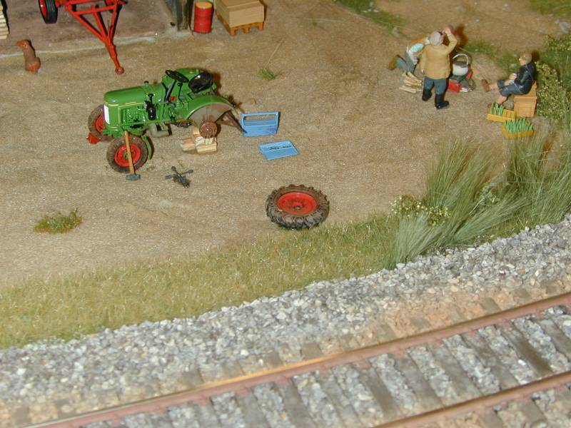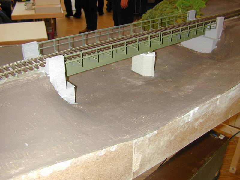Etwas enttäusch war ich von den Anlagen. Aufgebaut war eine große Modulanlage von der aber noch große Flächen (ich schätzte mehr als die Hälfte) reine Sperrholzwüste waren. Außerdem hatte ich den (subjektiven?) Eindruck, das ich fast alle durchgestalteten Anlagenteile schon letztes Jahr gesehen hatte.