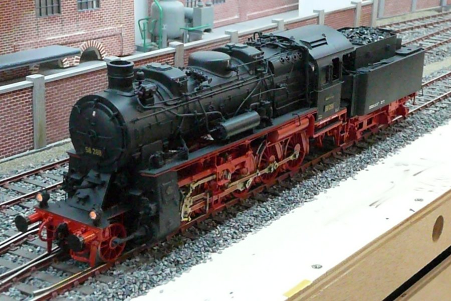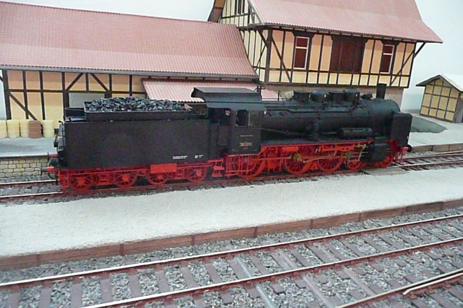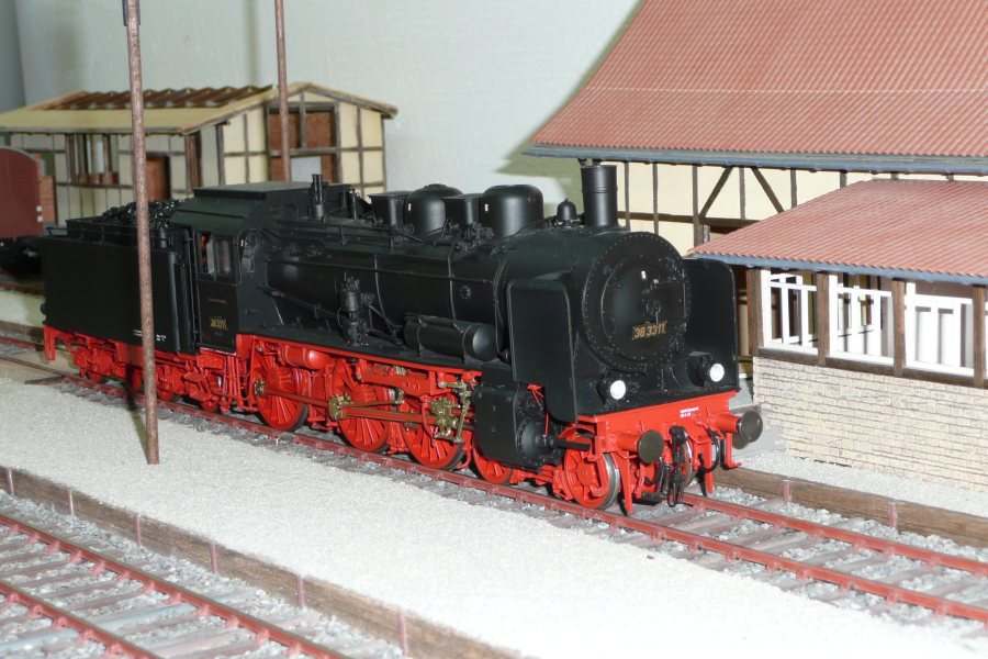 Herbert brachte einige seiner Loks mit (BR38, 58, 39 und 98) mit fantastischem Sound und sensationelle Fahreigenschaften. Leider hatten die großen Loks keine Chance die raumbedingt engen Kurven der Anlage (R-min 120cm) zu durchfahren. Mein persönliches Highlight war die Bauer BR38! Dazu noch ein paar Eilzugwagen ......(seufz).