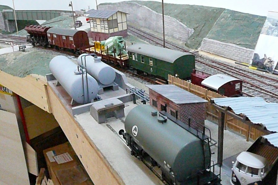 Obwohl Baldersheim noch nicht gebaut ist konnte doch schon etwas Fahrbetrieb auf der Anlage durchgeführt werden. Und so sind einige Rangiereinheiten und Zugfahrten zwischen Schattenbahnhof, Riedenau und dem Fabrikgelände - und dem Tunnel nach Balderheim als provisorisches Streckenende - unterwegs gewesen. Erst nach Mitternacht gelang es uns Thomas den Regler aus der Hand zu reißen ;-) .