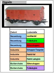 Statt einer kombinierten Wagen/Frachtkarte erfolgt die Aufteilung in Wagenkarten und „Pseudo-Frachtkarten“, ich nenne sie Zielkarten.