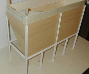 - Der Trichter besteht aus einem Sperrholzkern der mit Bretterplatten verkleidet wird. (ca 6-7mm Fugenabstand entspricht real 30cm Breite)