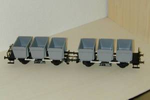 Jetzt müssen nur noch die weißen Teile schwarz eingefärbt werden. Hinten fehlt noch eine Griffstange für den Rangiertritt und evtl kommen noch Bremsumstellhebel an die Seite. Die Schütten vertragen auch noch eine Beladung (Briketts oder Koks für meinen Brennstoffhändler).
