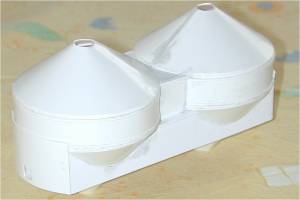 Die Rohrleitungsanschlüsse an den Stirnseiten und Seiten bestehen aus 3mm Rohr und einem Spritzlingsrest als Abdeckkappe.