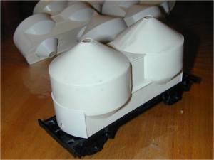 Da mir kein passender Spielzeuglastwagen zu Verfügung steht, muss ich wohl oder übel die Behälter selbst anfertigen. Dazu habe ich mir folgende Bauteile aus ABS-Platten hergestellt: