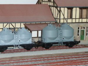 Das Fahrgestell und die Details am Kessel (Handhebel, Manometer ...) müssen noch etwas farblich überarbeitet werden. - Mach ich erst wenn alle Kds-Wagen soweit sind. Die Angst vor der Pinsellackierung ist vorläufig mal weg. Mal schauen wie der nächste Wagen wird (brrr)