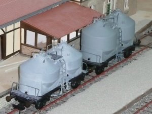 Farbe - also ein frisches Döschen (Revell Nr. 76 Hellgrau, matt) besorgt. Beim ersten Wagen hatte die Pinsellackierung eine recht ordentliche Oberfläche ergeben. Die Wagen werden noch gealtert - bei Kds-Wagen sowieso ein Muss.