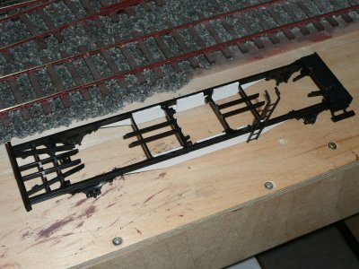 Abweichend wird diesmal ein OSM-Wagen als Fahrwerkspender herangezogen. Die üble Schnitzerei wie bei den anderen Wagen wollte ich mir nicht mehr antun.
