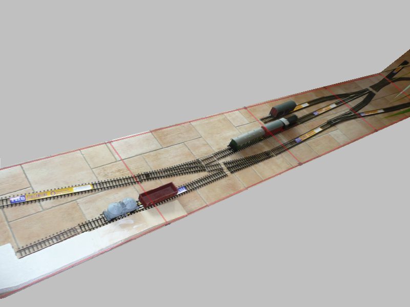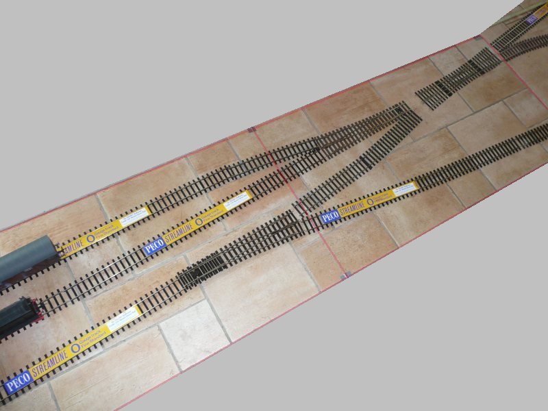 Bevor es ans Beschaffen des Holzes geht wurde der Gleisplan auf dem Boden ausgelegt um einen 1:1 Eindruck vom Bahnhof zu bekommen