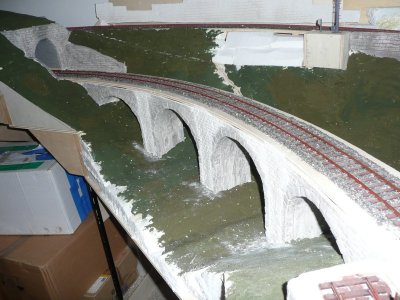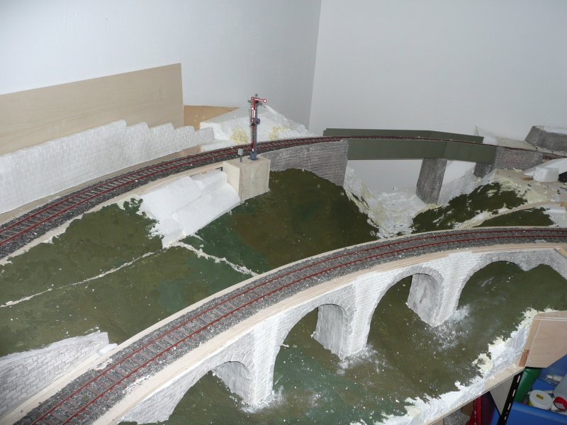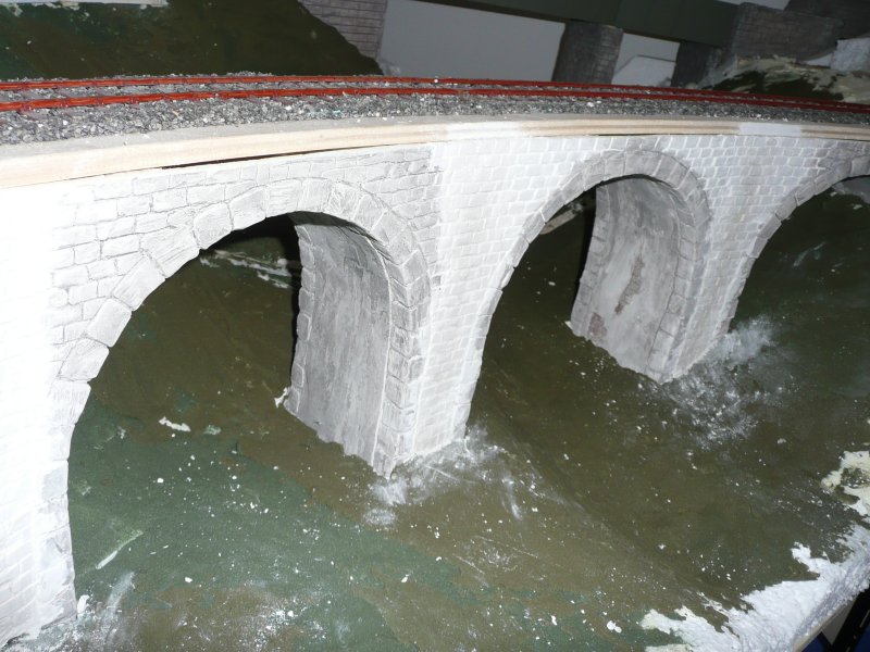 Der Viadukt wurde weitergebaut (Nahtstelle zwischen den einzelnen Viaduktteilen mit Moltofil füllen und Steine gravieren).