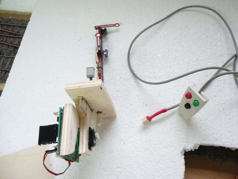 In der Bucht habe ich vor ein paar Jahren ein defektes Doppeltflügeliges Hauptsignal ergattern können. Der Antrieb war zwar nicht mehr zu retten, aber ein Servo-Antrieb von MBtronik hilft weiter. Verwendet wird es als Einfahrtsignal aus Richtung Baldersheim.