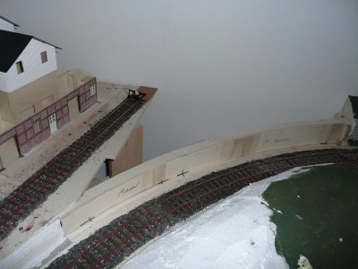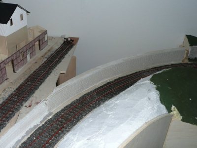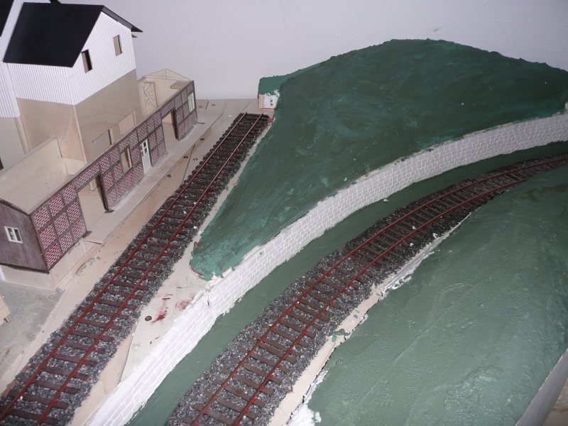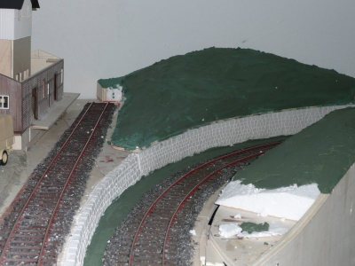 - Unterbau aus Sperrholz - Mauer aus Moltofill - Aufbau aus Styropor - Geländespachtel - Begrünung folgt wenn die Dreckarbeiten an der Anlage fertig sind.