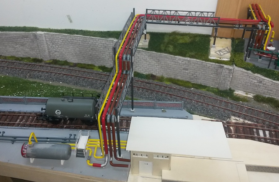 Die Rohrbrücke zum Tanklager erhielt eine Gitterstruktur (aus TT-Brückenelementen - preiswert in der "Bucht" geschossen).