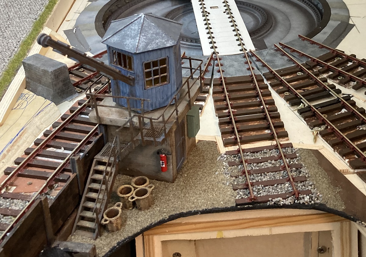 Der Wasserturm hat jetzt ein Oberteil in Fachwerk-Optik. Der Rohbau des Lagerschuppen steht. Der Bekohlungskran hat ein Geländer und die Bekohlung wurde gealtert.